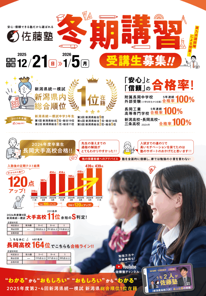 【長岡校 中2集団クラス 追加募集予定のお知らせ】
