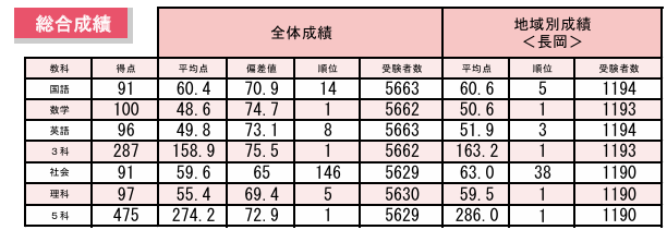 新潟県内の中3の受験生の半数が受ける模試ですが、今回も見事弊塾の生徒が新潟県内総合1位を勝ち取りました。