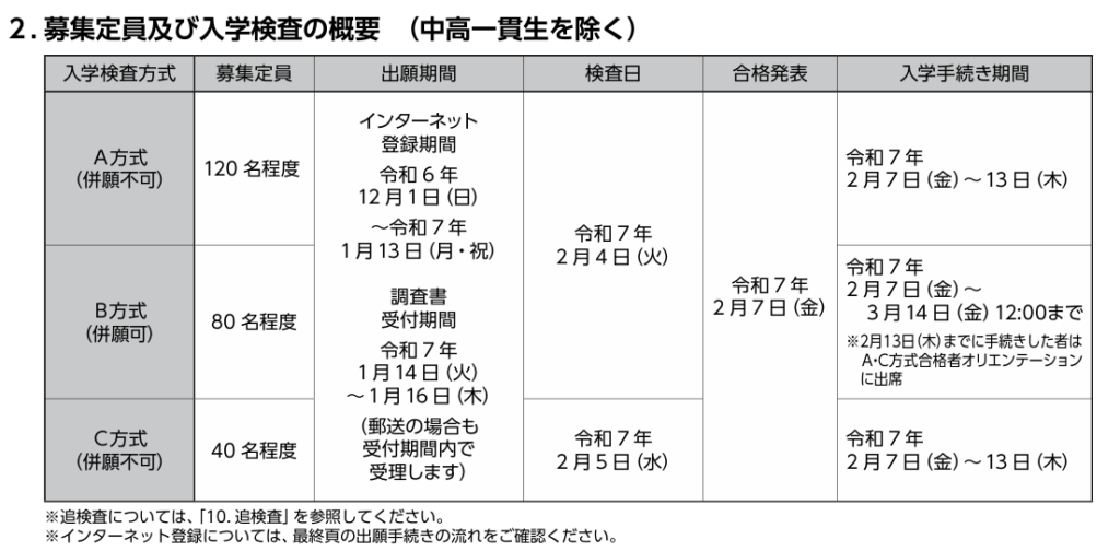 上の画像は令和7年入学者向けの募集要項になります。